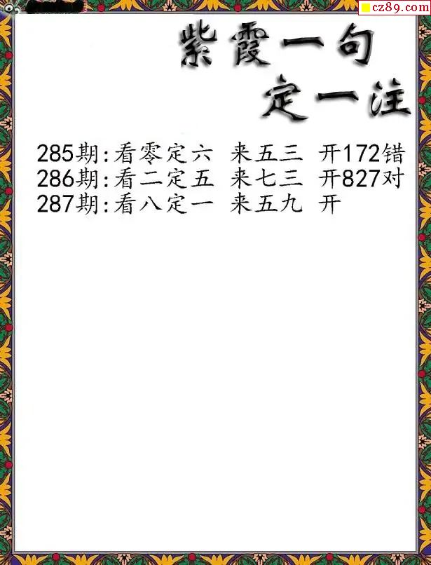 > 福彩3D2025287期紫霞一句定三码字图谜
