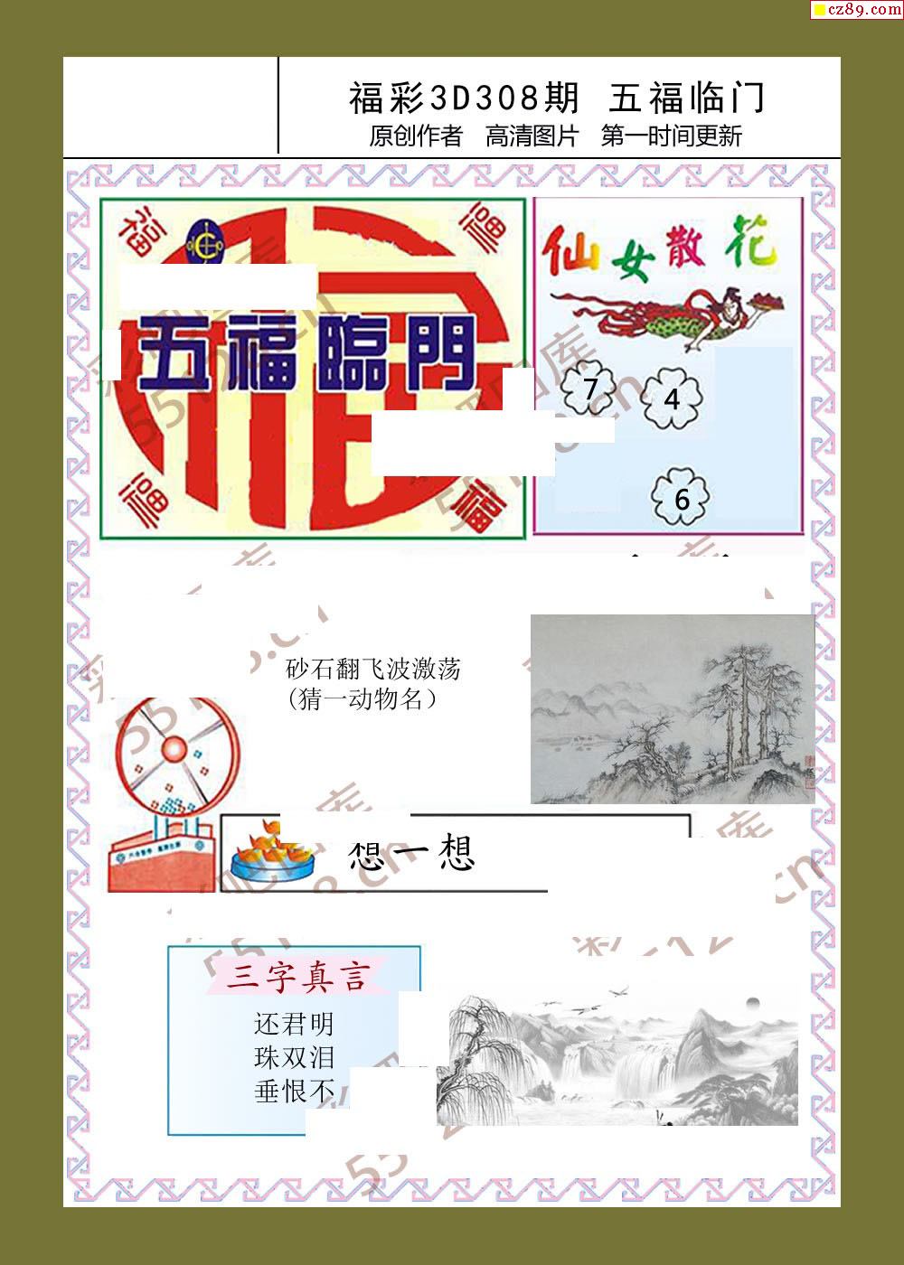 25年308期五福临门3d图迷